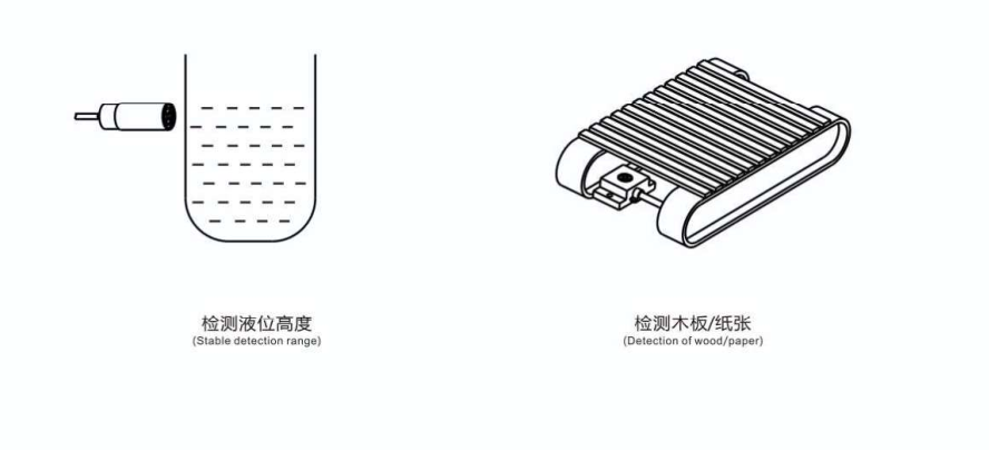 不同物體的導(dǎo)電率、介電常數(shù)、體積吸水率等參數(shù)不一樣、對應(yīng)的檢測距離也也不一樣。這款傳感器的外觀是圓型帶螺紋的,方便安裝。根據(jù)其原理,可以用來檢測多種材質(zhì)的物體,金屬、亞克力板、玻璃、液體、木頭等;可以應(yīng)用在多個場景。
