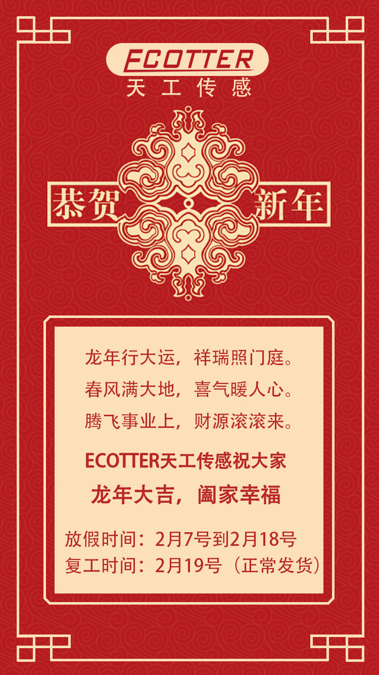 【恭賀新春】ECOTTER春節(jié)放假時間2月7號至18號,預祝大家新春快樂!
