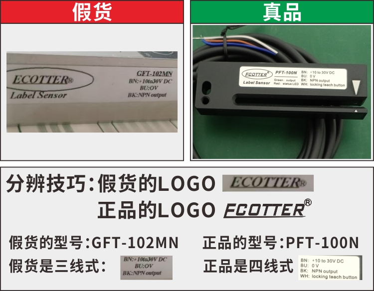 這里我們將舉例教大家分辨ECOTTER天工傳感的正品和外部冒充的假貨,讓消費(fèi)者購買到正品,也提醒假冒產(chǎn)品制售人員立即改正錯誤,停止不良行為。