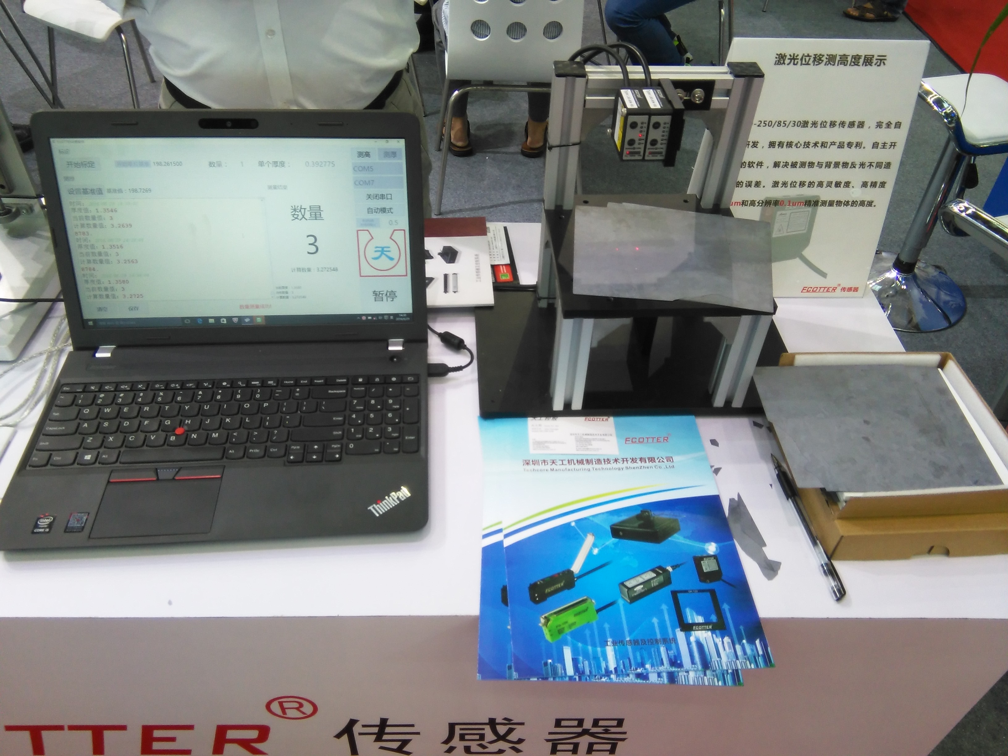 激光位移傳感器展示,分別制作了一套測厚裝置和測高裝置,讓客戶可以親自操作,實時了解產品的相關性能。