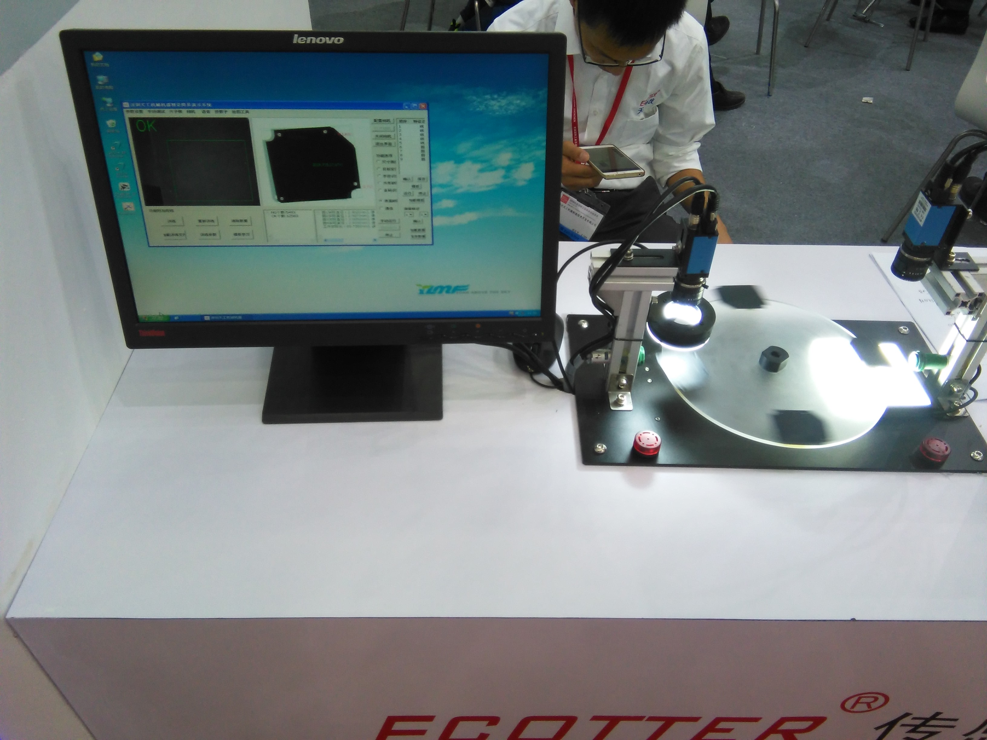 DEMO展示,制作了一個旋轉附有檢測物體的轉盤,利用機器視覺對其進行尺寸、表面瑕疵等準確的檢測。