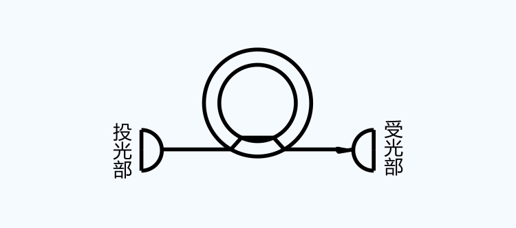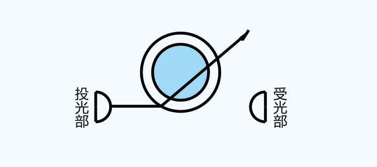如導管內有液體,投光部發(fā)出的光將穿透液體,不進入受光元件。(遮光狀態(tài))