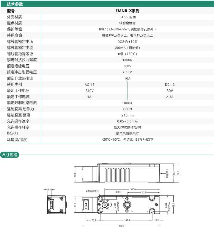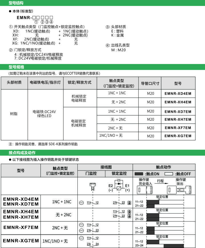 安全門開關(guān) 電磁式 兩組觸點(diǎn) EMNR-X 系列