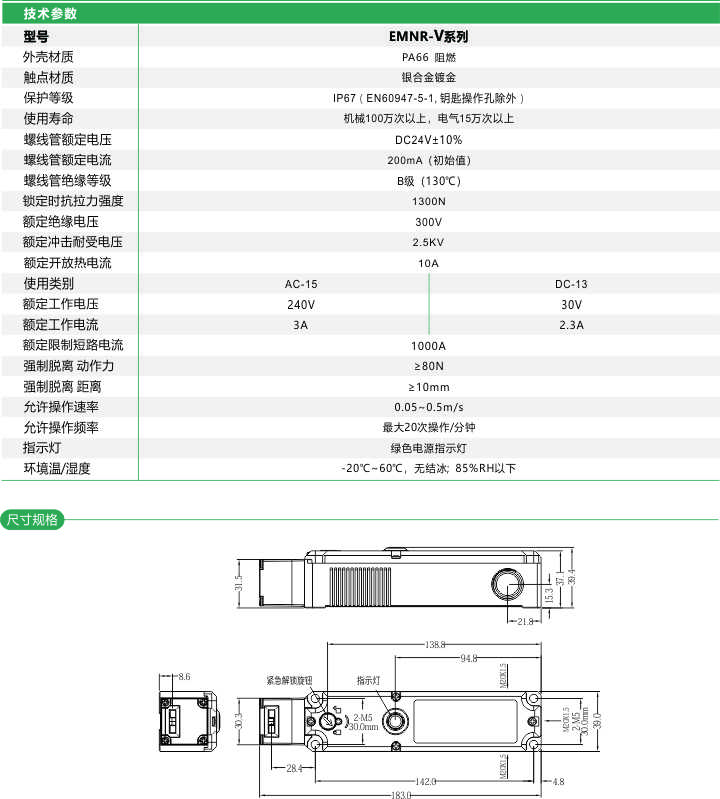 安全門開關(guān) 電磁式 四組觸點 EMNR-V 系列