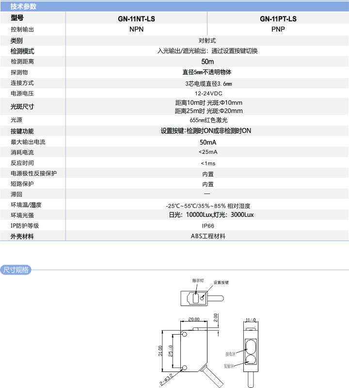 激光背景抑制對射光電開關(guān)GN-11T-LS