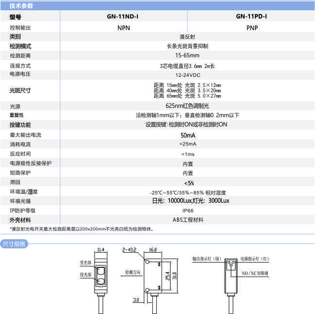 條形光背景抑制光電開關(guān)GN-11D-I系列
